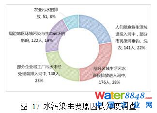 你認(rèn)為影響水污染最主要的原因中,22%的人選擇了人們隨意將生活垃圾投入河中,部分市民渠河垂釣、洗衣、28%的受訪者認(rèn)為是部分區(qū)域生活污水直接排放進(jìn)入河中23%的人認(rèn)為是部分企業(yè)將工廠污水未經(jīng)處理就排入河中、19%的人選擇周邊地區(qū)環(huán)境污染與生態(tài)破壞的影響,另有8%的人認(rèn)為是農(nóng)業(yè)污水的排放。