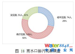 您是否見過向雨水口丟棄垃圾或傾倒污水的現(xiàn)象調(diào)查中,29%的人經(jīng)常見到50%的人偶爾見到,另有21%的人沒見到。
