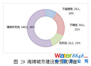 在問及海綿城市改造的施工過程可能會對您的生活產(chǎn)生一定影響,您是否能夠接受時(shí),10%的受訪者選擇不能接受、22%的人不確定可否接受、13%的人選擇無所謂56%的人受訪者則是理解并支持。