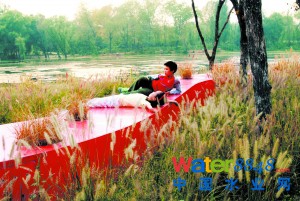 東岸:因為駁岸較緩,主要采用植物護(hù)岸,栽植一定量的蘆葦、香蒲等挺水植物,既能消除游船所形成的波浪對駁岸產(chǎn)生的不良影響,也起到了穩(wěn)定岸線的功能。