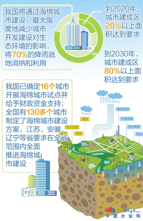 今年10月,國(guó)務(wù)院辦公廳印發(fā)《關(guān)于推進(jìn)海綿城市建設(shè)的指導(dǎo)意見(jiàn)》,要求通過(guò)海綿城市建設(shè),最大限度地減少城市開(kāi)發(fā)建設(shè)對(duì)生態(tài)環(huán)境的影響,將70%的降雨就地消納和利用。到2020年,城市建成區(qū)20%以上的面積達(dá)到目標(biāo)要求;到2030年,城市建成區(qū)80%以上的面積達(dá)到目標(biāo)要求。