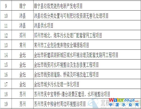 江蘇2015年度政府和社會(huì)資本合作(PPP)入庫(kù)項(xiàng)目(環(huán)保篇)