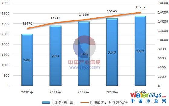 2010-2014年我國污水處理能力統(tǒng)計圖