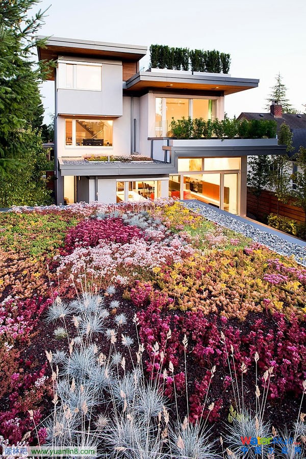 設計師在屋頂上使用草、植物和苔蘚等美化屋頂,也成為了現(xiàn)在的潮流,不僅美觀,更緣于實用。