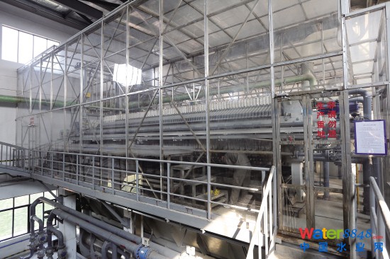 壓濾系統(tǒng),應(yīng)用注泥泵將濃縮調(diào)質(zhì)后的污泥注入到隔膜板框壓濾機(jī),對(duì)污泥進(jìn)行壓濾脫水