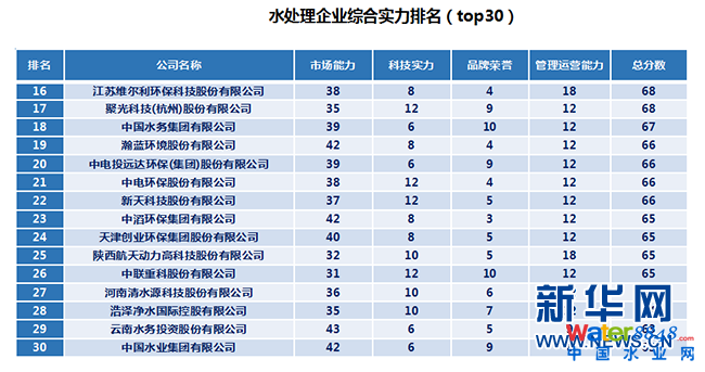 《中國(guó)水處理企業(yè)排名》榜單出爐