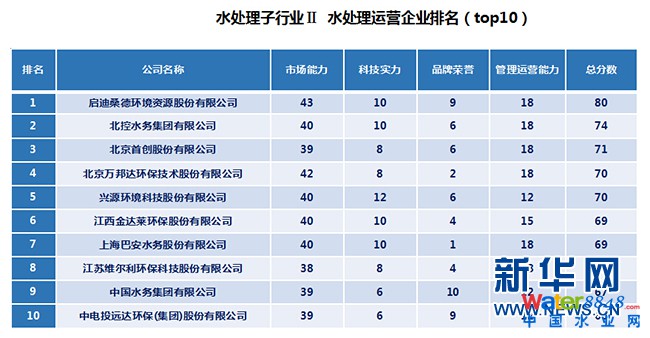 圖為,《中國(guó)水處理企業(yè)排名》水處理子行業(yè)Ⅱ水處理運(yùn)營(yíng)企業(yè)排名(top10)