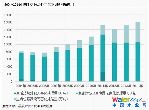 90年代末,垃圾填埋的對(duì)環(huán)境的威脅及占地問題開始得到重視,規(guī)范化和逐步取代填埋的政策導(dǎo)向開始確立。2000年起,《城市生活垃圾處理及污染防治技術(shù)政策》、《可再生能源發(fā)電價(jià)格和費(fèi)用分?jǐn)傇囆修k法》、《生活垃圾焚燒污染控制標(biāo)準(zhǔn)》等一系列法律、規(guī)劃、和標(biāo)準(zhǔn)逐步奠定了垃圾焚燒工藝路線發(fā)展的政策環(huán)境,填埋所占的垃圾處理量比率開始不斷降低,而以焚燒為主的其它工藝的處理量比率不斷升高。由于焚燒的技術(shù)含量更高以及核心設(shè)備(焚燒爐等)的國(guó)產(chǎn)化需求,我國(guó)的第一個(gè)固廢處理技術(shù)創(chuàng)新高峰也在這一時(shí)期到來。與此同時(shí),垃圾處理市場(chǎng)化進(jìn)程也在逐步往前走,如桑德環(huán)境(合加資源)、三峰環(huán)境、綠色動(dòng)力環(huán)保等現(xiàn)今已成為行業(yè)龍頭的幾家固廢處理(垃圾焚燒)企業(yè)也在此階段完成關(guān)鍵性的資源積累,開始在業(yè)務(wù)上快速橫向擴(kuò)張(跑馬圈地)。