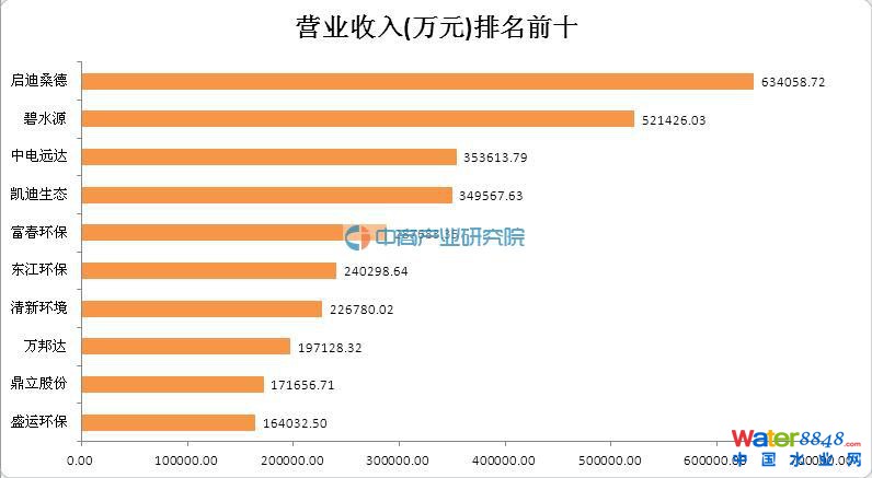營業(yè)收入排名:啟迪桑德2015年營業(yè)收入達63.41億元,位居行業(yè)第一;碧水源和中電遠達分別以52.14億元和35.36億元,分列二三位。