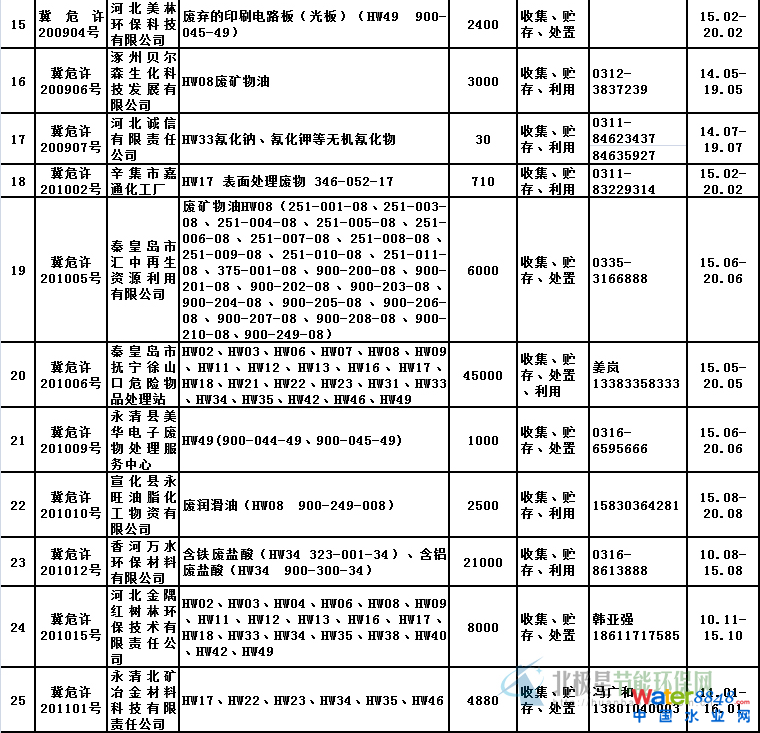 河北省獲得危險(xiǎn)廢物經(jīng)營(yíng)許可證企業(yè)一覽