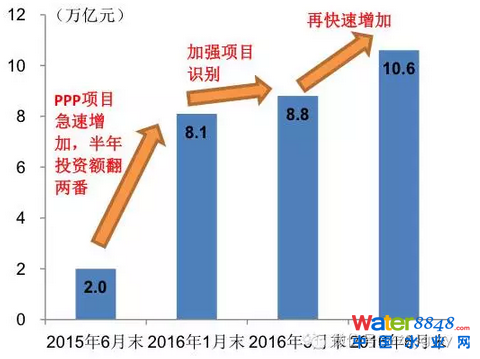 2015年初,市場對PPP的認(rèn)知仍停留在想象階段,2015年底,PPP模式已開始變得更為實際。從2015年6月到2016年3月,我國PPP項目庫中項目投資額大幅增加,半年時間達(dá)到8萬億規(guī)模,截至2016年3月末,全國PPP綜合信息平臺項目庫入庫項目7721個,總投資8.8萬億元。截至2016年6月末,全部入庫項目9285個,總投資10.6萬億元;以執(zhí)行階段項目數(shù)與準(zhǔn)備、采購、執(zhí)行等3個階段項目數(shù)總和的比值計,入庫項目的落地率為23.8%,比3月末落地率再高出2個百分點。其中,財政部示范項目232個,總投資額8025.4億元,處于執(zhí)行階段項目3078億元,落地率達(dá)48.4%,比3月末的35.1%增長13.3個百分點,正加速落地。PPP大時代已經(jīng)到來。