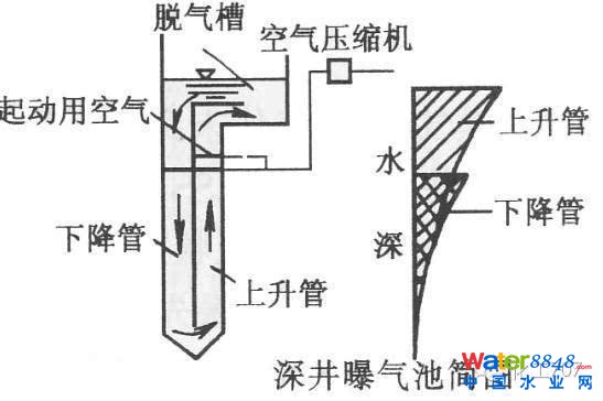 。1)一般曝氣池直徑約1-6m,水深約10~20m。深井曝氣法深度為50~150m。