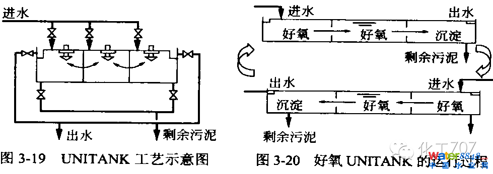 容積相同的池子串聯(lián)工作,交替作為曝氣池和沉淀池,無需污泥回流系統(tǒng),必須安裝自動(dòng)控制系統(tǒng),處理水質(zhì)好,污泥比較穩(wěn)定。