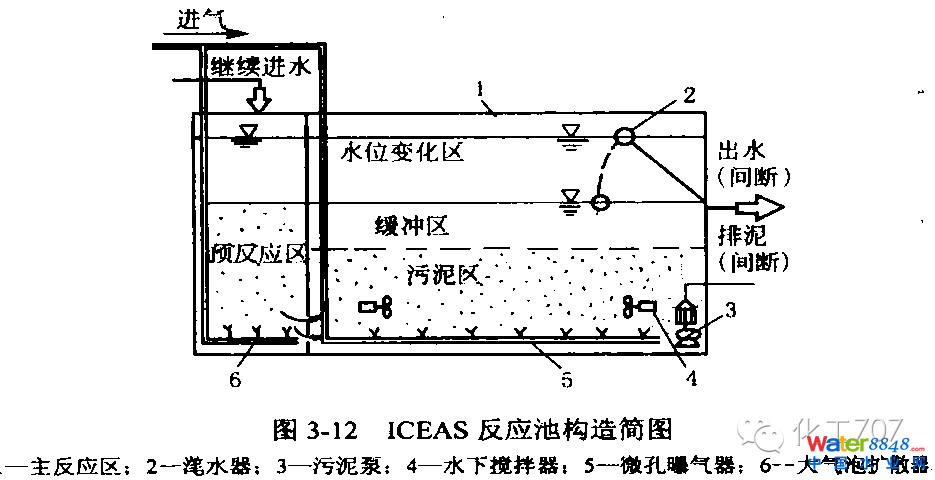 1.主反應(yīng)區(qū)處于停曝?cái)嚢锠顟B(tài)進(jìn)行反硝化時(shí),連續(xù)進(jìn)入的污水提供碳源,提高脫氮效率