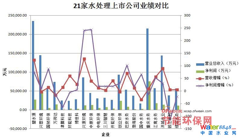 2016上半年21家水處理上市公司業(yè)績情況一覽