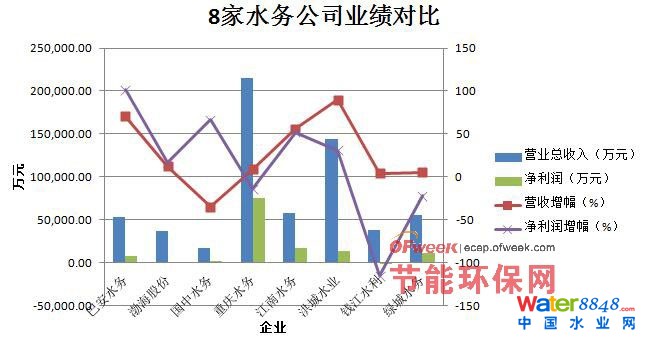 “水十條”的頒布帶動了水務(wù)市場再度迎來發(fā)展新高潮,水務(wù)運營行業(yè)已經(jīng)進入穩(wěn)步增長期。2016年上半年,我們關(guān)注的8家水務(wù)相關(guān)上市公司中,7家水務(wù)公司營收較大幅度增長,5家企業(yè)實現(xiàn)凈利潤增長。