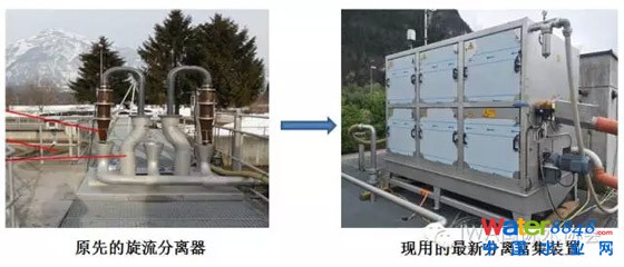另外,由于主流系統(tǒng)中Anammox菌及污泥的顆粒化,顯著提高了污泥的沉降性能。Strass廠原有的三個二沉池,在筆者參觀時,停用了其中一個。只需要兩個二沉池就能保障出水水質。這是新型分離富集裝置使用后的額外效果。