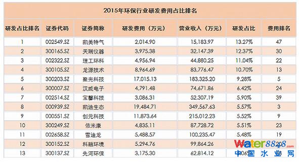 環(huán)保上市公司研發(fā)費曝光 龍凈環(huán)保一家突破4億元