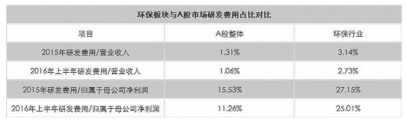 有行業(yè)人士認(rèn)為,研發(fā)投入占營業(yè)收入比例達(dá)到5%才具有競爭力,因此,環(huán)保板塊上市公司研發(fā)投入的力度仍有待提高。