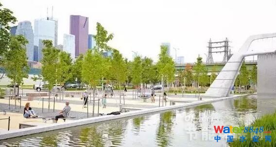 該案例不僅將雨洪管理功能融入城市娛樂休閑,還突出體現(xiàn)了其藝術(shù)價值。地下-地上相結(jié)合的污水處理方式增加了多功能特性,保護(hù)了水質(zhì);其高超的藝術(shù)設(shè)計(jì)提高了城市景觀美感,成為北美景觀熱點(diǎn)之一。
