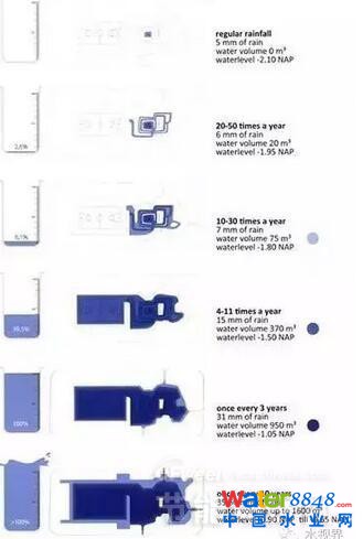為解決雨季暴雨成災(zāi)的問題,荷蘭鹿特丹市采取了一系列措施,其中最具創(chuàng)新的是修建雨洪廣場。該廣場由3個蓄水池組成,雨洪廣場不僅解決了附近社區(qū)的洪澇問題,還為居民提供了休閑娛樂場所。