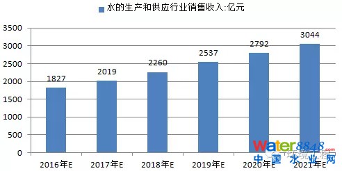 “十三五”期間將是水處理高峰期,2015年是新環(huán)保法實(shí)施的一年,最嚴(yán)格環(huán)保法的推出將使得執(zhí)法不嚴(yán)的現(xiàn)象得到糾偏。此外,2015年是“水十條”落地并全面執(zhí)行的第一年,行業(yè)發(fā)展進(jìn)入加速期,水治理行業(yè)景氣度進(jìn)入高峰期。預(yù)計(jì)到2021年,我國(guó)水的生產(chǎn)和供應(yīng)行業(yè)銷售收入將超過(guò)3000億元。