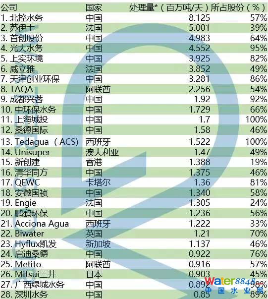 【排行榜】全球水務(wù)公司TOP50:BOT、BOO項(xiàng)目開發(fā)商排名