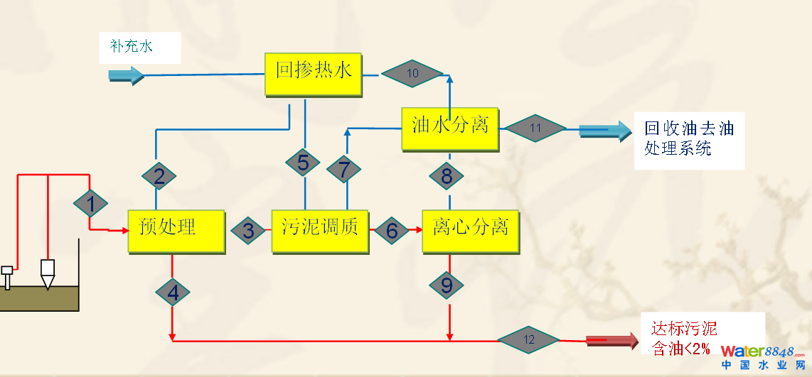 采用國際上應用廣泛的調(diào)質(zhì)-機械脫水技術(shù)——污泥流化與預處理——調(diào)質(zhì)——離心分離
