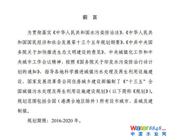“十三五”全國(guó)城鎮(zhèn)污水處理及再生利用設(shè)施建設(shè)規(guī)劃