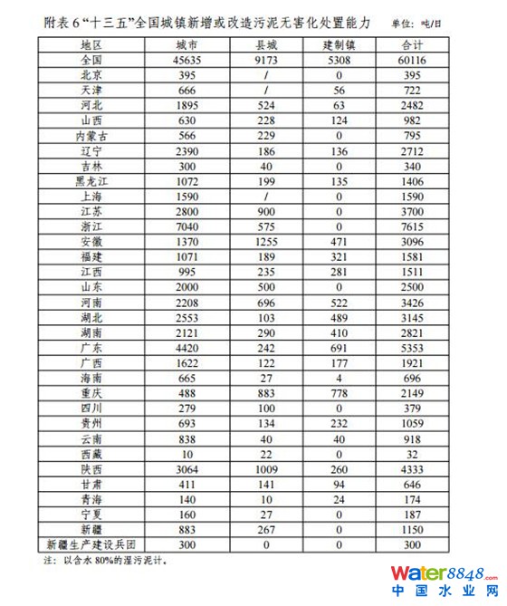 附表 6 “十三五”全國(guó)城鎮(zhèn)新增或改造污泥無害化處置規(guī)模................................. 19