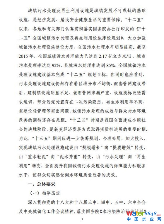 十三五全國(guó)城鎮(zhèn)污水處理及再生利用設(shè)施建設(shè)規(guī)劃.pdf