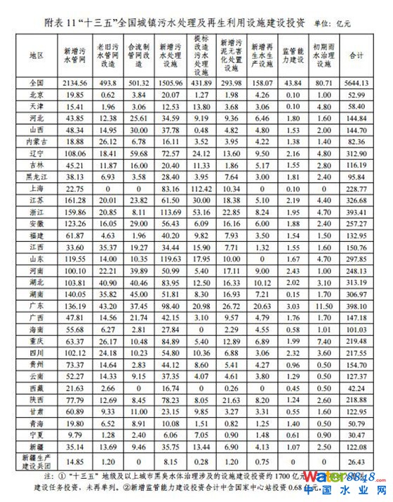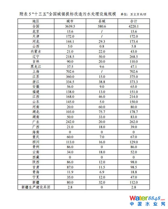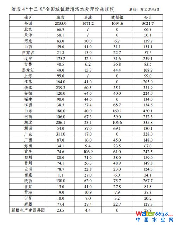 附件:“十三五”全國(guó)城鎮(zhèn)污水處理及再生利用設(shè)施建設(shè)規(guī)劃