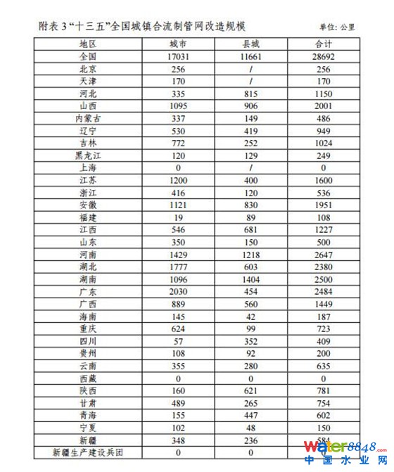 附表 3 “十三五”全國(guó)城鎮(zhèn)合流制管網(wǎng)改造規(guī)模..................................................... 16