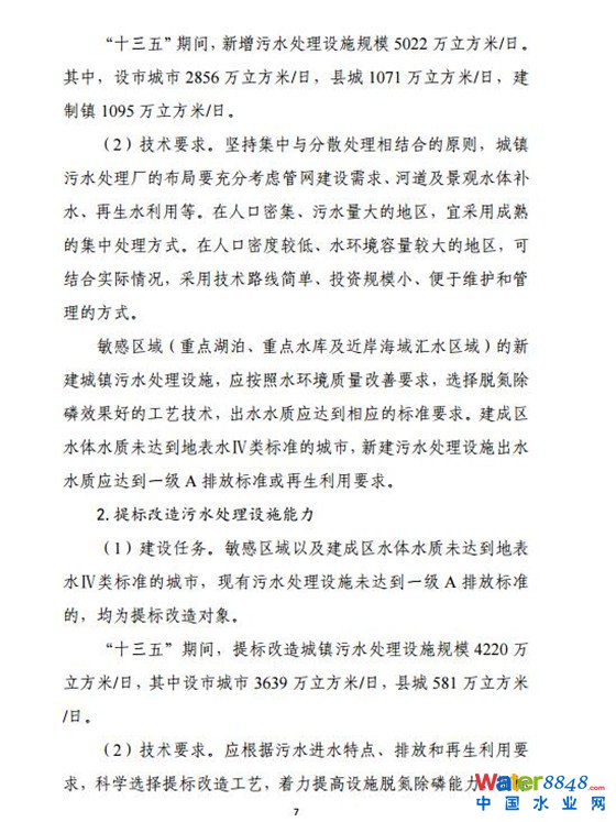 關(guān)于印發(fā)《“十三五”全國(guó)城鎮(zhèn)污水處理
