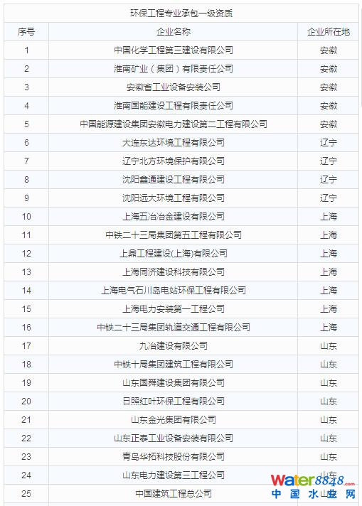 【匯總整理】2017環(huán)保工程承包商大全 找找有你家嗎 國(guó)內(nèi)環(huán)保工程專業(yè)承包商一級(jí)資質(zhì)的企業(yè)名單