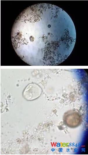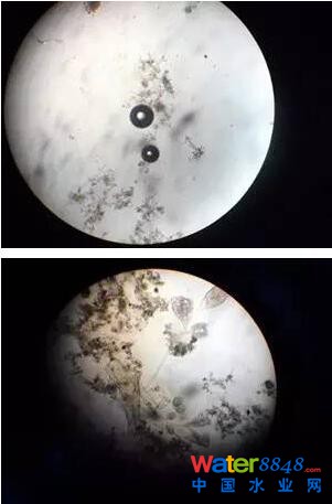 一般在活性污泥老化時,通常是看后生動物的數(shù)量占優(yōu)勢,后生動物大量繁殖可作為污泥老化的指標(biāo)。此外,觀察活性污泥菌膠團(tuán)狀況,一般在活性污泥老化的情況下,菌膠團(tuán)都顯得粗大色深。
