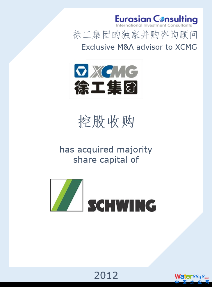 • 標(biāo)的公司:全球領(lǐng)先的混凝土成套設(shè)備生產(chǎn)商德國施維英集團有限公司,年銷售額:約5億歐元(2010)