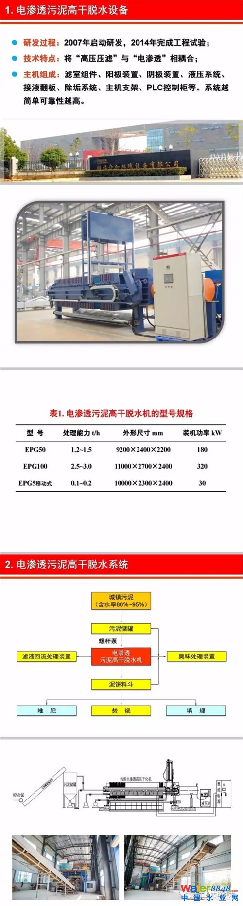 所屬頻道: 水處理  關鍵詞:污泥處理 電滲透污泥高干脫水 市政污泥干化脫水技術