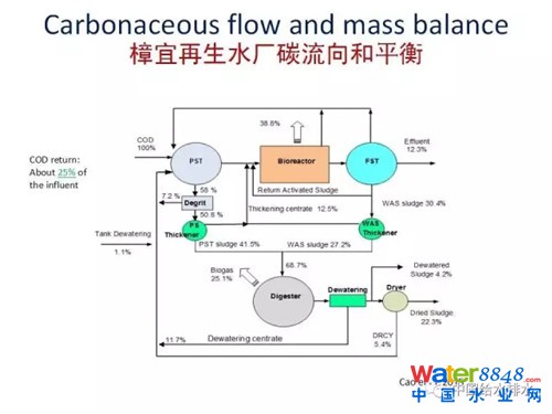 這張圖是整個(gè)廠里面碳的流向,你可以看到每一個(gè)過程碳的分布,而重要的是有多少碳進(jìn)入了厭氧消化池,而產(chǎn)生的多少甲烷氣。