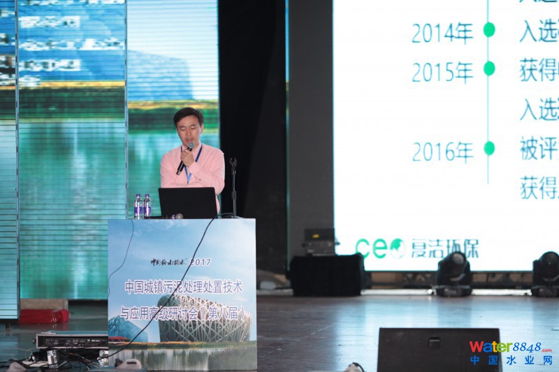 我們知道傳統(tǒng)的污泥脫水和干化往往是通過離心機(jī)、板框或者新型電滲透,這是一個脫水的過程。如果對污泥含水率有更低的要求,往往接一個干化、流化床。我們技術(shù)包含上述脫水和干化的全過程,實(shí)現(xiàn)了一個污泥脫水跟干化一體化。下面是我們的技術(shù)開發(fā)的一個大事紀(jì):2011年的時候,我們在蘇州建立了一個示范工程,也是我們工業(yè)化的一個設(shè)備的投產(chǎn)運(yùn)行。列入了國家污泥處理處置技術(shù)創(chuàng)新聯(lián)盟成員單位。2012年通過報產(chǎn)業(yè)協(xié)會和江蘇省住建廳技術(shù)成果鑒定。我們是上海企業(yè),在蘇州有我們的分公司,技術(shù)研發(fā)也是借助蘇州分公司的一個研發(fā)平臺。2013年列入住建部十二五國家水體污染控制與治理科技重大專項(xiàng),包括科技部創(chuàng)新基金,包括引燃行業(yè)的一些推薦的先進(jìn)技術(shù)目錄等。2015年獲得中國石油和化學(xué)工業(yè)聯(lián)合會科技進(jìn)步獎,包括環(huán)保部的環(huán)境保護(hù)技術(shù)保護(hù)名錄。去年獲得上海市水務(wù)海洋科技進(jìn)步一等獎。這個獎項(xiàng)還是比較重要的。