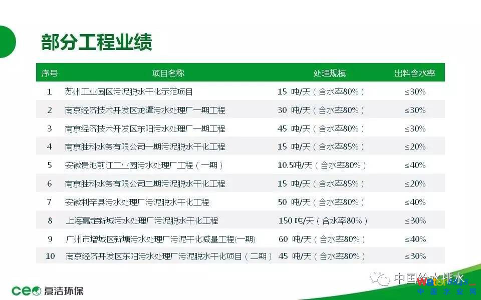 時間關(guān)系后面簡單一點(diǎn),就是我們的技術(shù)是2011年開始工業(yè)化投產(chǎn),2012年、2013年的六七年時間里,我們承接了包括南京、安徽、上海、廣州等地十幾個項(xiàng)目,目前在運(yùn)行的項(xiàng)目也有十幾個。這是蘇州工業(yè)園區(qū)的示范工程(10噸每天);南京開發(fā)區(qū)龍?zhí)段鬯幚韽S(30噸每天);南京經(jīng)濟(jì)開發(fā)區(qū)東陽污水處理廠(50噸每天),這是一期,二期也是我們做的,也是50噸的;勝科水務(wù)35噸,要求含固率達(dá)到20%以下;這是上海嘉定另外一個項(xiàng)目,這個項(xiàng)目規(guī)模設(shè)計150噸,這是去年年初已經(jīng)停產(chǎn)了,嘉定大政今年年初到現(xiàn)在運(yùn)行5個月左右;這是上海的一個工業(yè)項(xiàng)目,晟碟半導(dǎo)體一個做U盤的單位的危廢處理項(xiàng)目。其他的時間有限,不一一介紹了。這是我們二維碼還有聯(lián)系方式,如果有交流的各位領(lǐng)導(dǎo)專家同行可以多多聯(lián)系。