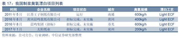 但隨著紙漿行業(yè)排放標(biāo)準(zhǔn)的日益嚴(yán)格,我們判斷未來(lái)國(guó)產(chǎn)品牌進(jìn)入這一市場(chǎng)的可能性越來(lái)越大。主要原因?yàn)椋?)隨著項(xiàng)目增多,對(duì)中小型漿廠而言,國(guó)產(chǎn)臭氧品牌的價(jià)格優(yōu)勢(shì)更有吸引力;2)隨著國(guó)產(chǎn)品牌不斷的研發(fā)投入,其產(chǎn)品質(zhì)量會(huì)跟上紙漿漂白要求;3)部分國(guó)產(chǎn)臭氧企業(yè)登陸資本市場(chǎng),融資能力增強(qiáng),不排除未來(lái)收購(gòu)進(jìn)口品牌,跨越式技術(shù)提升的可能。