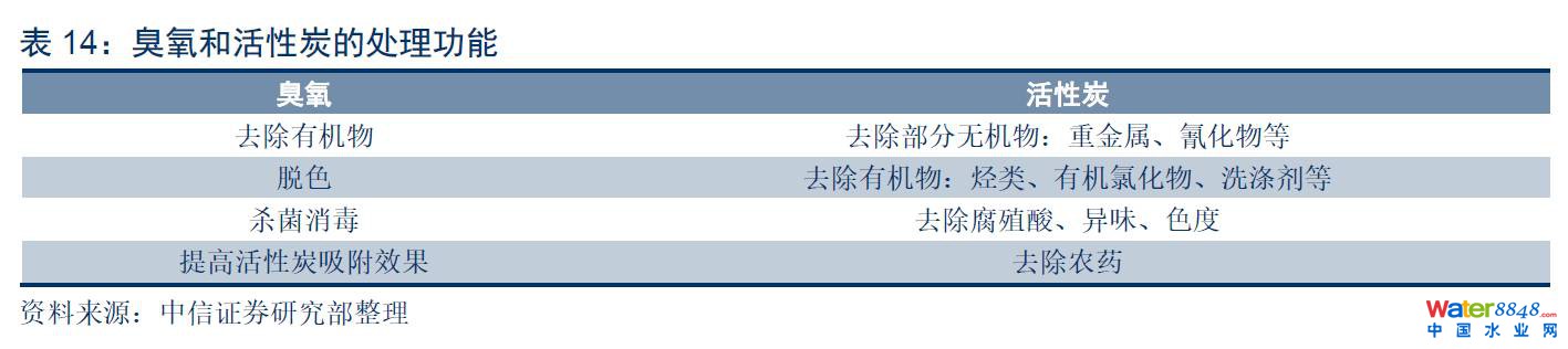 “臭氧+活性炭”深度處理全面鋪開(kāi)。“臭氧+活性炭”目前已成為水廠深度處理改造和新建項(xiàng)目的主流工藝。其中臭氧起殺菌消毒作用,活性炭起吸附過(guò)濾作用。