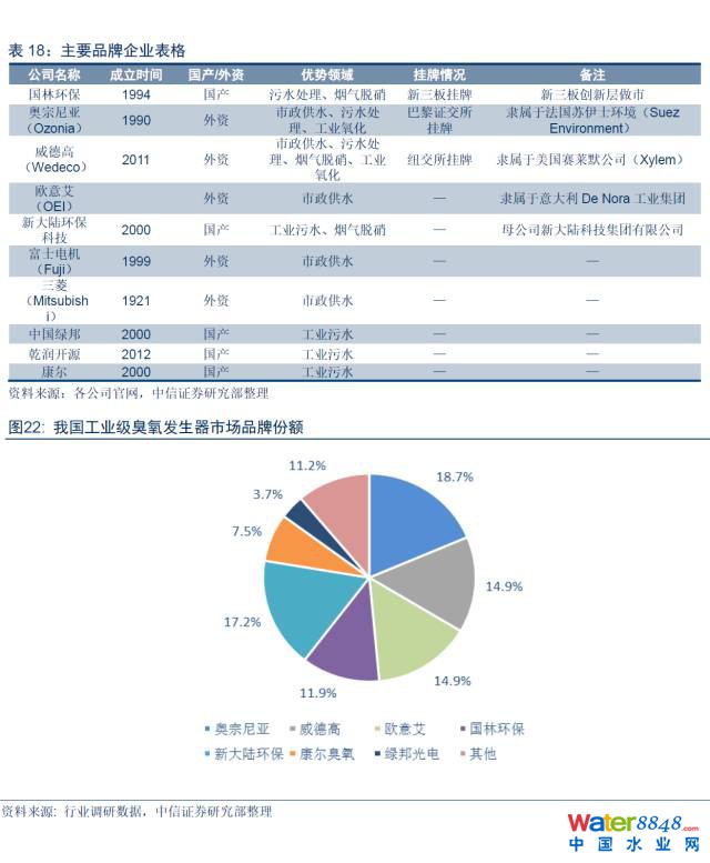 供水處理和紙漿漂白因?yàn)樯婕肮┧踩瓦B續(xù)生產(chǎn),對(duì)臭氧設(shè)備質(zhì)量要求較高,是外資品牌的優(yōu)勢(shì)領(lǐng)域。污水處理和煙氣脫硝相對(duì)更看重性價(jià)比,國(guó)產(chǎn)品牌因此具有相對(duì)優(yōu)勢(shì)。