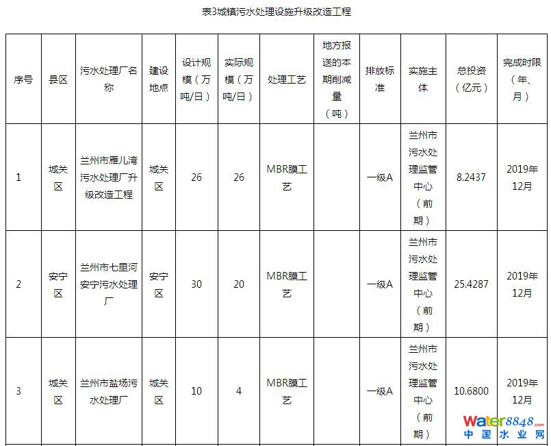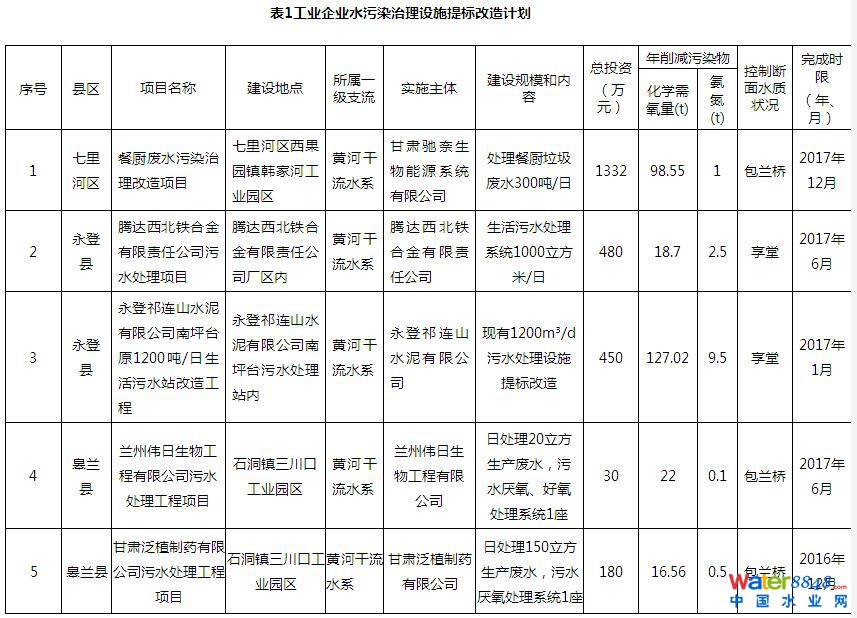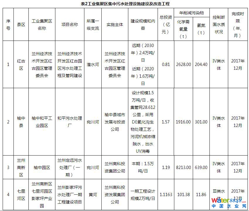 蘭州市2017年度水污染防治行動(dòng)工作方案 四座污水處理廠升級(jí)改造項(xiàng)目從2017年開(kāi)工,2019年投入運(yùn)營(yíng),確保蘭州市主城區(qū)四座污水處理廠于2019年底前全面達(dá)到一級(jí)A排放標(biāo)準(zhǔn) 完成污泥處理處置項(xiàng)目