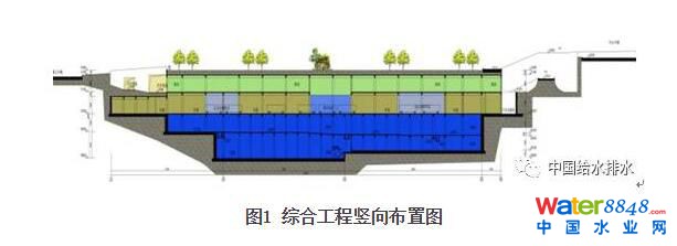 貴陽(yáng)市彭家灣五里沖棚戶區(qū)改造污水處理綜合工程是國(guó)內(nèi)首例地下式污水廠與城市改造綜合工程結(jié)合的設(shè)計(jì)案例,該工程在地下四層建筑中集地下商場(chǎng)、機(jī)械停車庫(kù)、公交首末站、6.0×104 m3/d規(guī)模的污水處理廠為一體,地面為景觀公園,總用地面積3.94ha。設(shè)計(jì)方案有效解決了舊城改造中污水治理與城建開發(fā)用地需求的矛盾,最大程度地減少了對(duì)生態(tài)環(huán)境的破壞。