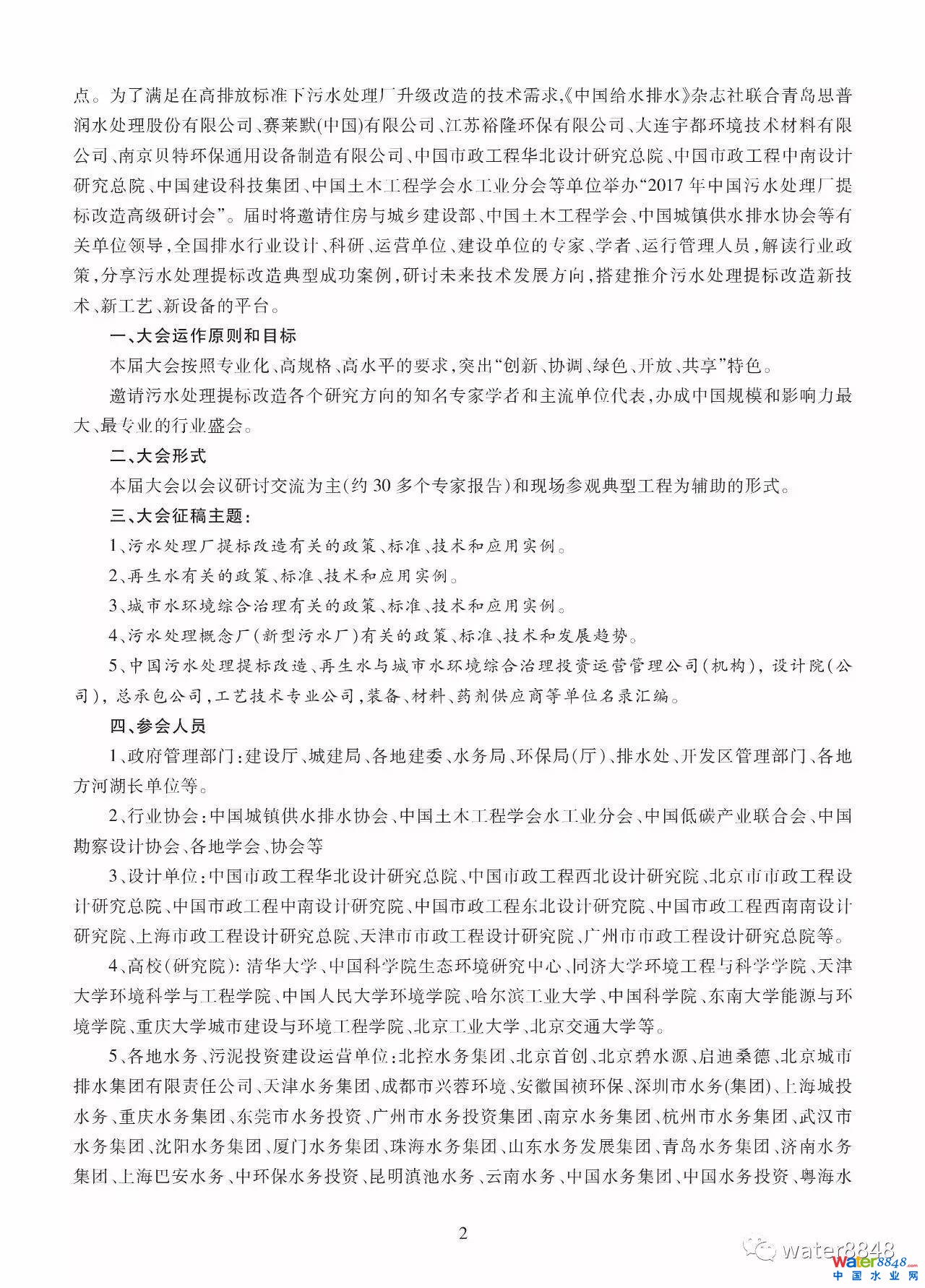 2017年中國(guó)污水處理廠提標(biāo)改造高級(jí)研討會(huì)邀請(qǐng)函暨征稿啟事