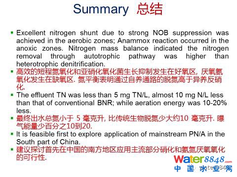 題目:日處理二十萬(wàn)立方的主流氨厭氧化過(guò)程構(gòu)型,運(yùn)轉(zhuǎn)和與常規(guī)生物脫氮的比較