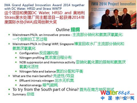日處理二十萬(wàn)立方的主流部分硝化和氨氮厭氧氧化: 反應(yīng)器構(gòu)型,運(yùn)轉(zhuǎn)和與傳統(tǒng)的生物脫氮工藝的比較 曹業(yè)始 新加坡PUB前首席專家