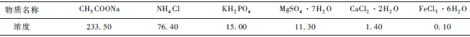 2014 年11 月上旬,從四川省阿壩州馬爾康市的市政下水道、河流湖泊中采樣,當(dāng)時的采樣溫度為5 ℃左右。隨后,將采集來的污泥用于耐冷微生物的篩選與馴化,微生物生長的培養(yǎng)基采用LB 培養(yǎng)基,后期培養(yǎng)活性污泥的污泥來源是成都市龍泉驛區(qū)的平安污水處理廠。實驗用的人工污水配方如表1 和表2所示。